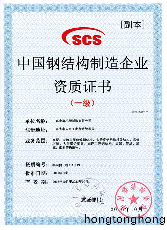 中(zhong)國(guo)鋼(gang)結(jie)構(gou)製造(zao)企業資質證書