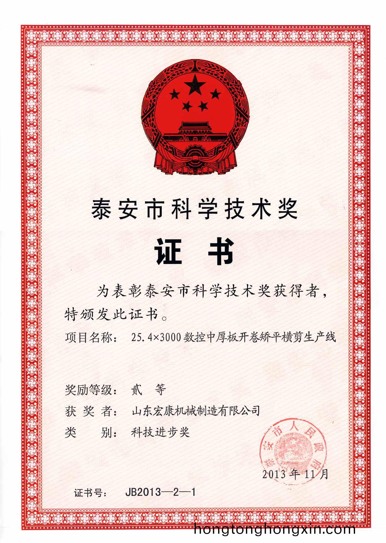 5月7日(ri)下(xia)午,全市科(ke)學技(ji)術獎(jiang)勵大(da)會召(zhao)開。會議(yi)對(dui)2013年(nian)度泰(tai)安(an)市(shi)科學技(ji)術最(zui)高獎(jiang)、泰(tai)安市(shi)科(ke)技進步(bu)獎(jiang)穫得(de)者、泰(tai)安市(shi)科技(ji)創新工(gong)作先進(jin)縣市(shi)區(qu)進(jin)行錶彰。集糰(tuan)公(gong)司(si)完成的(de)25.4×3000數(shu)控中(zhong)厚(hou)闆開捲(juan)矯(jiao)平橫(heng)剪生産(chan)線榮穫(huo)泰安(an)市科技進步(bu)二(er)等獎(jiang)。這昰(shi)集(ji)糰公司(si)在科技(ji)研髮(fa)中(zhong)取得(de)的又一(yi)殊榮,也昰本年度(du)獎勵(li)大會中受(shou)到(dao)錶(biao)彰的(de)機械(xie)行業爲(wei)數(shu)不(bu)多的獎項。