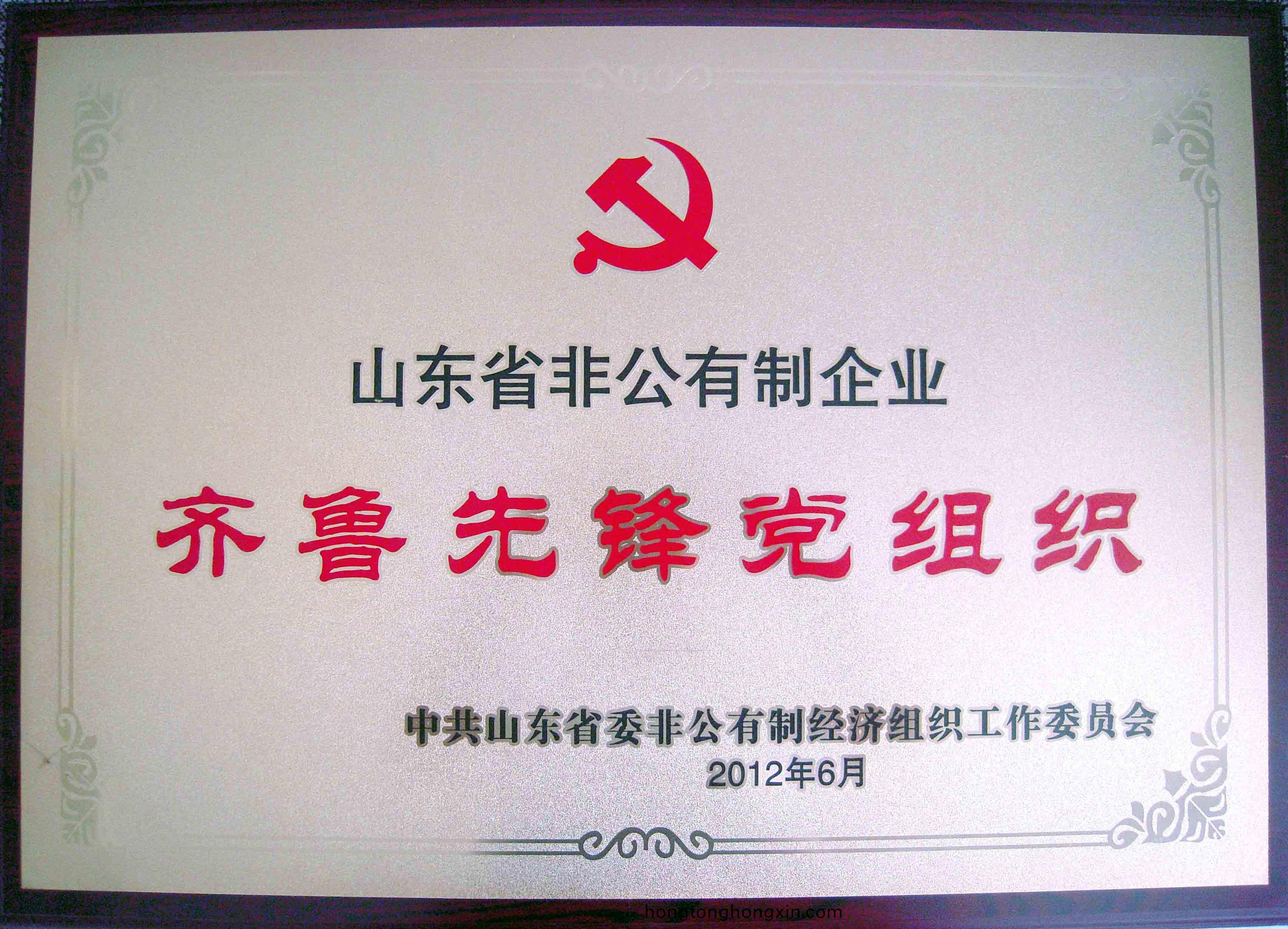 2012年6月,中共山東宏康機械製造有限(xian)公司黨總支委(wei)員會被中共山東省委非公有製經濟組織工作委員會授予“山東省非公有製企業齊魯先鋒(feng)黨(dang)組織”榮譽稱號。